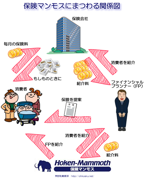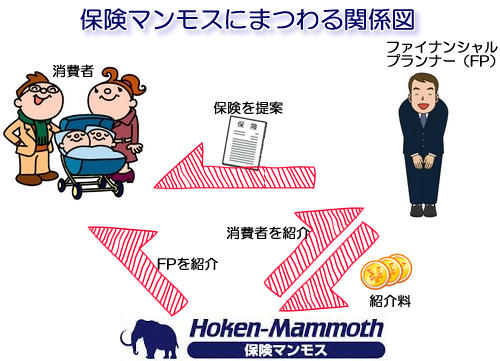 それによって、保険マンモスはFPから紹介料をもらって利益を出しています。